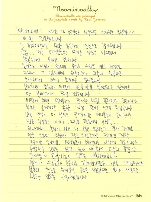 개그맨 장동혁이 팬들에게 친필로 감사의 뜻을 전했다.