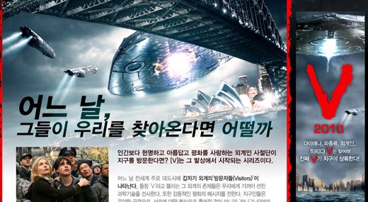 외계로부터 방문자(visitor)가 지구로 찾아와 벌어지는 일을 그린 미국 드라마 '브이(V)'가 20여 년만에 리메이크 돼 인기를 끌고 있다.