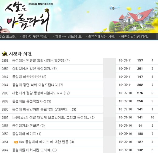 11일 확인 결과, SBS 시청자상담실 측은 "정확한 수치는 없지만 드라마의 동성애 소재로 인해 항의 전화를 많이 받고 있다"고 밝혔다.