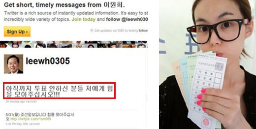 지방선거가 있었던 지난 2일, 각자의 트위터에 "아직까지 투표 안하신 분들 저에게 힘을 모아주십시오!!!"란 지지 호소문을 올린 이원희 서울시 교육감 후보와 기표소 내 셀카를 게재한 미료가 '선거법 위반' 논란에 휩싸였다.
