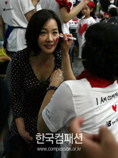 이날 사전행사 진행을 맡은 엄지원은 일찌감치 경기장을 찾아 얼굴에 태극마크를 그리고 응원의 물결에 동참했다. 엄지원은 한국컴패션을 통해 해외 어린이를 후원하고 있다.