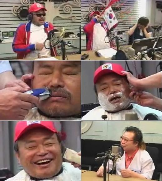 가수 김흥국은 26일 라디오 생방송을 통해 월드컵 16강 진출로 공언했던 콧수염 삭발식을 공개했다. 김흥국은 이날 오후 2시 방송된 MBC 라디오 '김흥국, 김경식의 두시 만세' 생방송을 통해 콧수염 삭발식, 일명 '삭털식'을 갖고, 이 영상을 MBC '보이는 라디오'를 통해 인터넷으로 공개했다. 이에 청취자들은 "약속을 지키는 김흥국", "김흥국은 월드컵의 사나이"라며 열띤 지지를 아끼지 않았다.