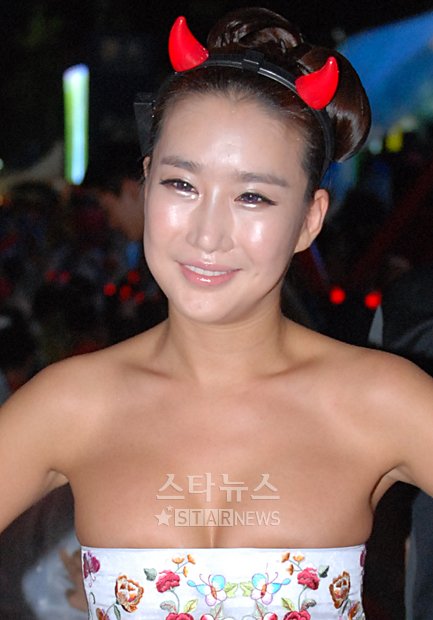 똥습녀 임지영이 2010남아공월드컵 16강전 대한민국 대 우루과이의 경기가 열리고 있는 26일 오후 서울 영동대로에서 응원하고 있다. 임지영은 가슴이 훤히 드러난 의상을 입고 나와 눈살을 찌푸리게 했다.