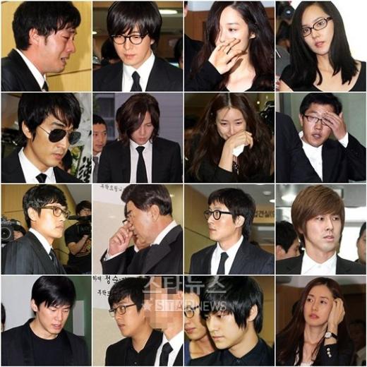 여자 배우들도 이와 다르지 않았다. 일본 일정을 취소하고 급거 귀국한 김하늘, 고인과 연인 사이였던 유진, '겨울연가'에서 호흡을 맞췄던 최지우를 비롯해 김민정, 김규리, 김현주, 장신영, 최은주, 추소영, 서유정, 변정수, 이연희, 강래연, 박한별, 윤은혜, 박시연 등이 30일 차례로 조문했고, 1일에도 김지수, 윤손하, 박시은 등이 고인의 빈소를 찾았다.