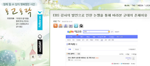 '동고동락'은 국방부의 공식블로그로 국방부의 행사일정, 관련 뉴스 등이 올라와있다.