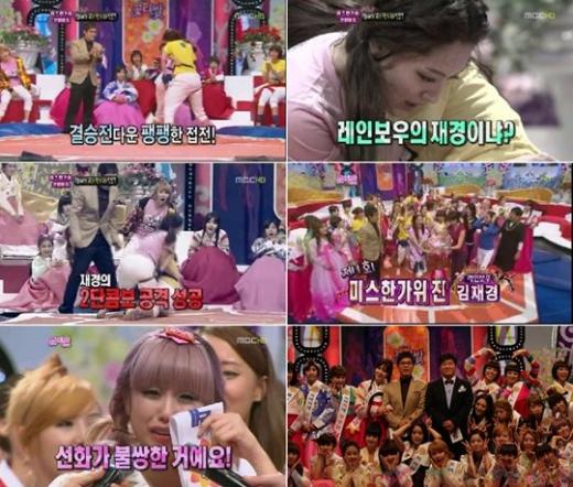 MBC 청춘 버라이어티 '꽃다발' 추석특집 '미스 한가위 선발대회'에서 걸그룹 레이보우의 재경이 미스 한가위 진에 등극했다.