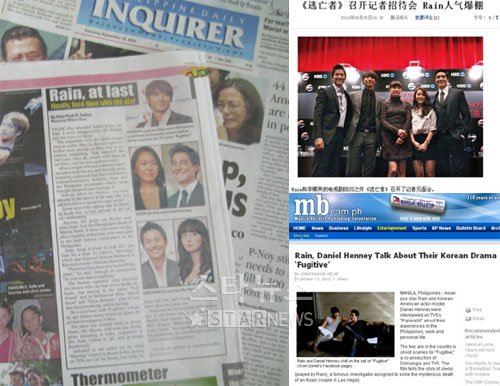 '마닐라 블레틴' 역시 지난 13일자 인터넷판에서 비와 다니엘 헤니를 소개하며 '도망자'에 대한 관심과 필리핀 현지 로케로 인한 기대를 전했다.