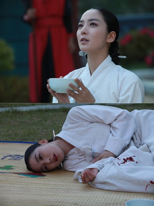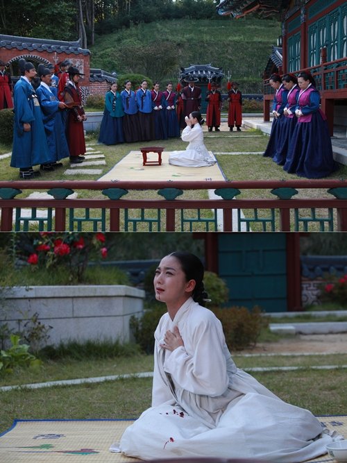 소복 차림의 옥정은 이날 방송에서 마지막으로 청이 있다며 숙종에게 죽어 가는 자신의 마지막 모습을 보아달라고 부탁한다. 그리고는 덤덤하지만 비장하게 최후를 맞는다.