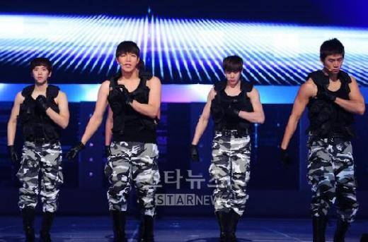 남성그룹 2PM이 2010 KBS가요대축제에서 밀리터리룩으로 절도 있고 힘 있는 무대를 선보여 탄성을 자아냈다.