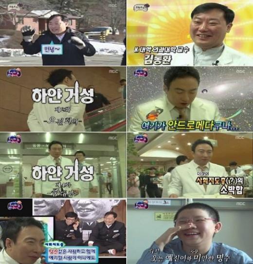 평소와 달리 매니저, 스타일리스트 없이 이른 새벽부터 하루를 시작한 박명수는 자신의 이름이 새겨진 의사 가운을 입고 의학용어로 진행되는 회의와 강의 참석은 물론 회진, 외래진료, 대학 강의 스케줄 등을 소화했다. 메디컬 드라마 '하얀거탑'을 연상시키는 '하얀거성'이라는 자막과 음악은 더욱 폭소를 자아냈다.