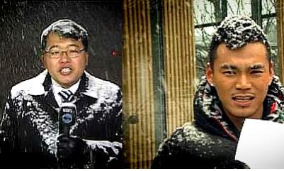 이정은 22일 오후 방송될 KBS 2TV '국민히어로 명! 받았습니다' 녹화에서 박대기 기자의 폭설 뉴스보도를 그대로 재연했다.