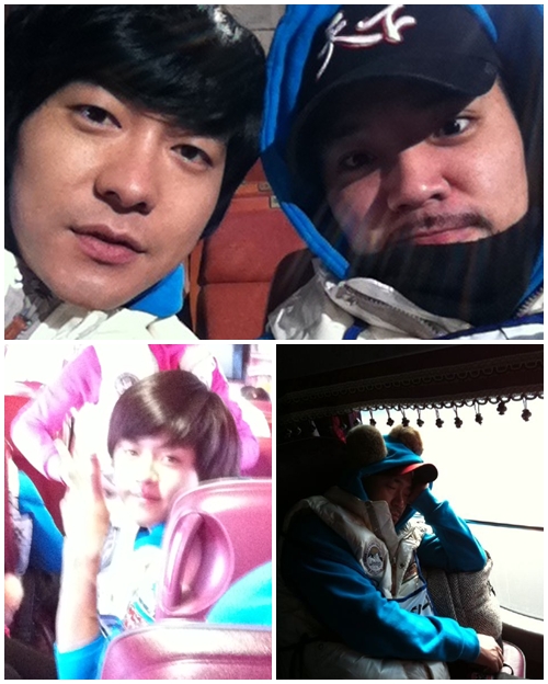 가수 마리오는 27일 오전 10시 30분께 자신의 트위터에 KBS 2TV 설특집 프로그램 '연예인 복불복 마라톤 대회' 촬영장과 이동 버스 안에서 찍은 사진들을 연이어 공개했다.