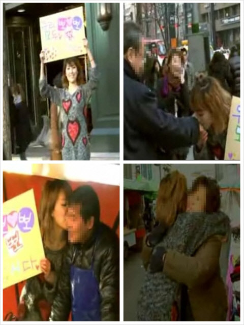 최근 인터넷상에는 서울 강남역 일대에서 행인들에게 뽀뽀를 해주는 여성의 동영상이 공개돼 관심을 모았다. 영상 속 여성은 '우리 모두 뽀뽀뽀 합시다'라고 적힌 피켓을 들고 다니며 사람들의 손등이나 뺨에 가벼운 뽀뽀를 했다.