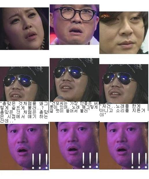 합성물은 '가수의 표정과 성향, 박완규의 독설, 피디의 표정' 이 세 가지가 절묘하게 맞아 떨어져 눈길을 끈다.