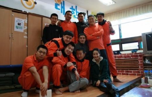 이지윤 아나운서의 뒤로는 배우 공유와 젝스키스 출신 김재덕, NRG 출신 노유민이 보인다. 가수 싸이, 배우 서재경, 배우 백봉기의 모습도 보인다. 병사들은 모두 주황색, 검은색 생활복을 입은 채 군인의 모습으로 포즈를 취하고 있다.