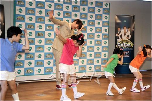 이날 아이들의 용기를 북돋우기 위해 기자간담회 오프닝 무대에서 출연 아동 4명과 함께 '수퍼키즈 댄스' 일명 손호영 비만댄스를 선보인 손호영은 "춤 잘 봐주셔서 감사하구요. 저도 나이가 있는데 힘들었어요"라는 소감을 전해 좌중이 폭소했다.