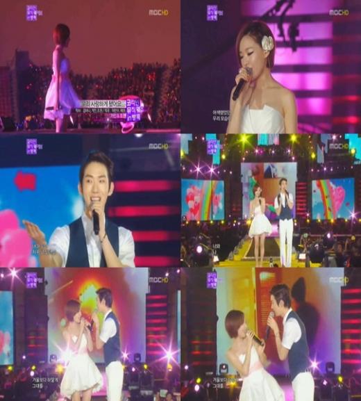 17일 오후 방송된 MBC 창사 50주년 특별기획 '태국 한류 콘서트(코리안 뮤직 웨이브 인 방콕)'(연출 제영재)에서는 2AM 조권과 브라운아이드걸스 가인이 아름다운 듀엣을 선보였다.