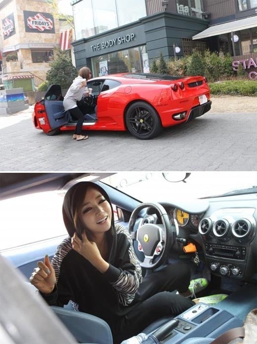 탤런트 진재영이 페라리를 타고 있는 사진이 인터넷에 올라와 화제가 되고 있다.