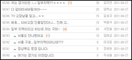 시청자들은 "일부 지역이 아니다"라며 경기도 수원, 이천, 경북 구미 등 거주지를 밝히기도 했다.