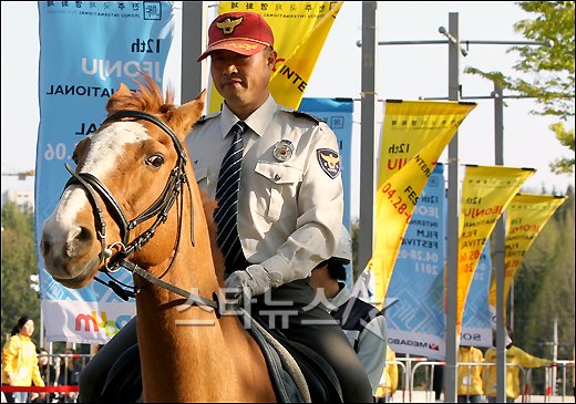 연예방송[★포토]JIFF, 말타고 순찰해요~발행 : 2011.04.28 ・ 17:32전주(전북)=송지원 기자28일 오후 전주 고사동 한국소리문화의전당에서 열릴 제12회 '전주국제영화제(JIFF)' 개막식 레드카펫 행사를 앞두고 경찰관이 기마순찰을 돌고 있다.<저작권자 © 스타뉴스, 무단전재 및 재배포 금지>준오헤어헤어쇼추천 기사좋아요 연예-방송의 인기 급상승 뉴스연예-방송의 최신 뉴스