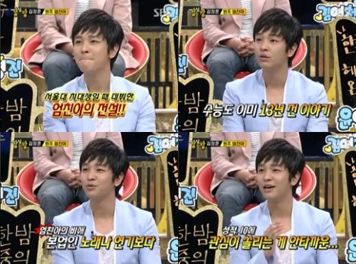 3일 오후 SBS '강심장'에 출연한 김정훈은 '원조 엄친아'라는 주제로 자신의 이야기를 털어놨다.