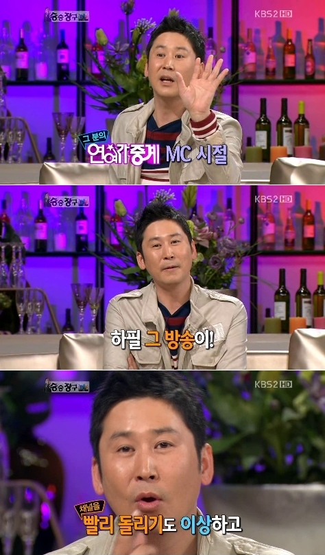 신동엽은 10일 방송된 KBS 2TV 예능프로그램 '승승장구'에 출연해 아내 선혜윤PD와 TV를 보던 중 전 여자친구였던 이소라가 나와 당황했다고 말했다.