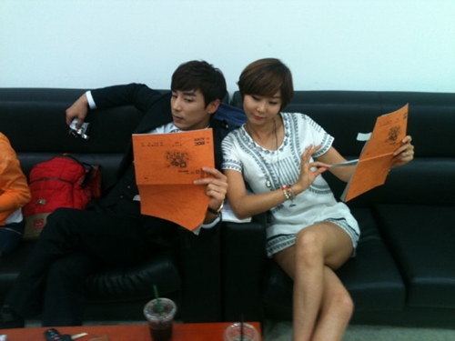 김나영은 지난 30일 오후 5시 15분께 자신의 트위터를 통해 "전태풍 이사님과 김나영 선생님. 우리 열혈연기 위해 대본 보는 중"이라는 글과 함께 사진을 올렸다.