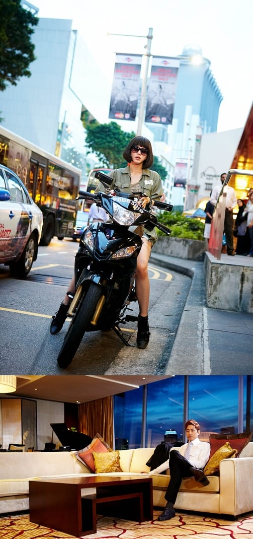 사진 속 한예슬은 오토바이 위에 올라 도발적인 매력을 선보이고 있다. 한예슬은 싱가포르 쇼핑거리 오차드 로드에서 오토바이 추격신을 촬영했다. 한예슬은 극 중 북한 최고의 정예요원답게 택시를 타고 이동하는 한류 스타 강우의 뒤를 능숙하게 쫓는 액션 연기를 선보였다.
