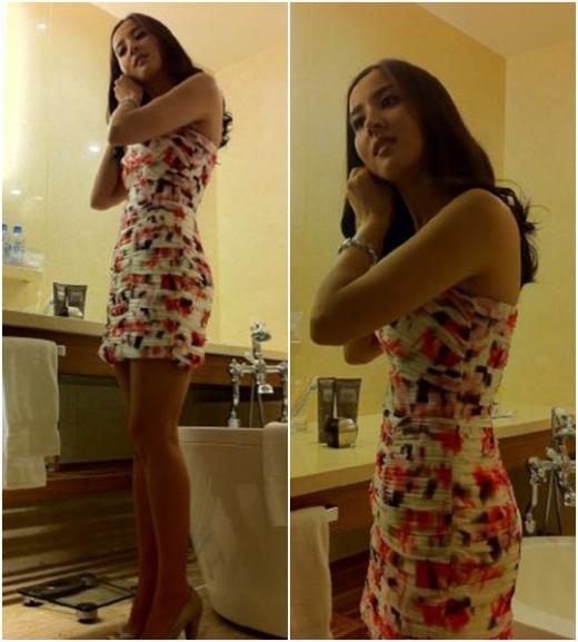 한혜진은 15일 오후 6시께 자신의 트위터에 "'아시안 드림컵' 가기 전에 우리 스텝이 찍어 준 사진이에요, 밑에서 찍어 준 거 맞아요"라며 사진 두 장을 올렸다.