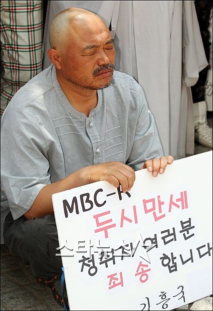 김흥국은 17일 낮 12시 서울 여의도 MBC 방송센터에서 1인 시위를 마무리 하고 삭발식을 거행했다.
