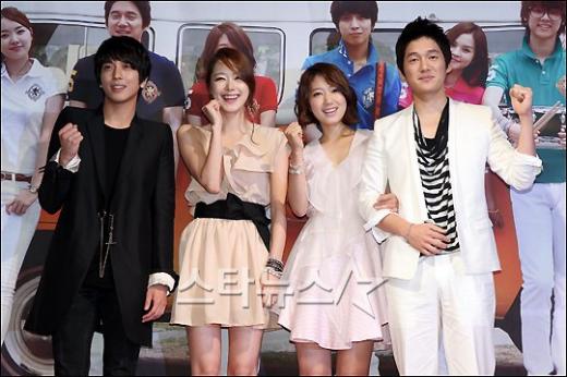 연기자 정용화와 소이현, 박신헤, 송창의가 23일 오후 서울 강남구 노보텔 앰배서더 호텔에서 열린 MBC 수목드라마 '넌 내게 반했어' 제작발표회에 참석해 파이팅을 외치고 있다.