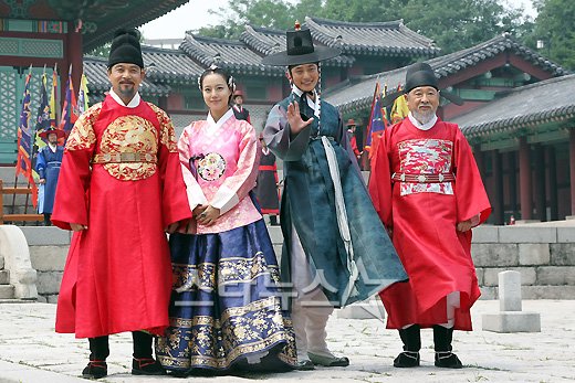 배우 김영철, 문채원, 박시후, 이순재(왼쪽부터)가 28일 오후 서울 경희궁에서 열린 KBS 수목드라마 '공주의 남자' 포스터 촬영현장 공개에서 포즈를 취하고 있다.