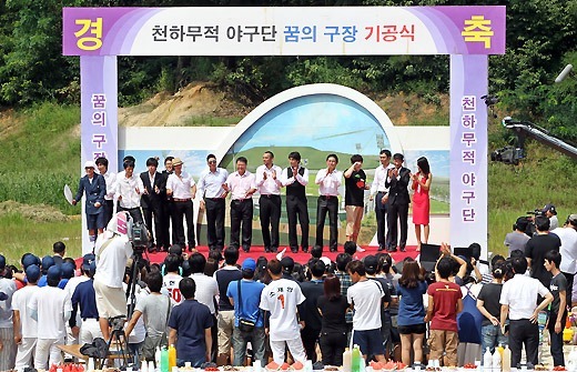 이 관계자는 이어 "공사가 중단됐지만 '천하무적 야구단'은 완공을 위해 계속 노력할 것이다"면서 "현재 설립 기금을 마련하기 위해 여러 가지 방안을 모색하고 있다"고 밝혔다.