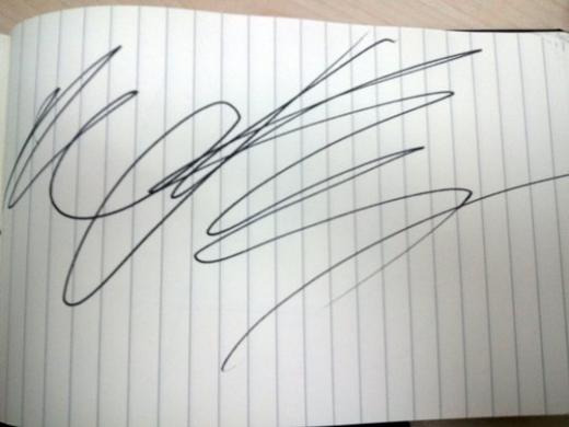 사인 요청도 많아져서 혼자 연습해 하나 만들었다고 한다. "한열군 사인도 만들었어요"하고 물으니 "보여 드릴까요"하며 옆에 있던 기자의 수첩에 멋지게 사인을 하나 해줬다.