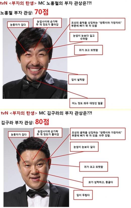 케이블채널 tvN '부자의 탄생' MC 김구라와 노홍철의 '부자 관상' 점수가 공개됐다.