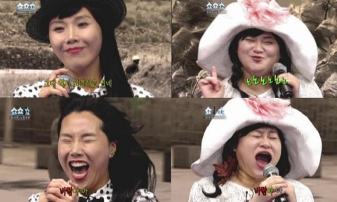 개그우먼 신봉선과 김신영이 90년대 원조요정 가수 강수지와 하수빈을 패러디해 눈길을 끈다.