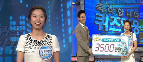 3일 KBS에 따르면 최근 진행된 '퀴즈 대한민국' 녹화에서 백옥(24, 회사원)씨가 퀴즈영웅에 등극, 상금 3500만원을 획득했다.