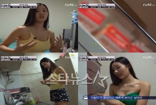 한편 한씨는 지난 23일 출연해 수술 없이 개인적인 관리로만 A컵에서 E컵으로 가슴을 업그레이드시켜 눈길을 모았다. 한씨는 하루에 마사지를 7시간, 가슴 운동을 3시간 하고 자신이 '마법의 가루'라 부르는 가루를 먹으며 6년간 노력했다. 또 가슴을 지나는 경락을 자극해 성장을 유도하는 한방 침을 자주 맞기도 했다고 주장했다.