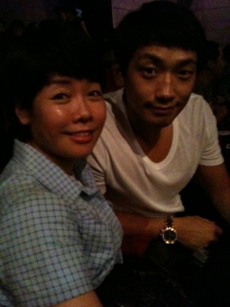 김미화는 지난 23일 오후 자신의 트위터에 "어제 공유에 이어 이게 웬 횡재! 지금 비 옆자리에 앉아 영화 '푸른소금' 보고 있어요. 히히"라는 글과 함께 한 장의 사진을 공개했다.