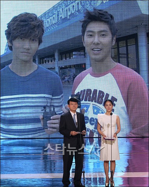 연예방송[★포토]동방신기 '시상식 불참 죄송해요~'발행 : 2011.09.02 ・ 16:42이명근 기자그룹 동방신기가 2일 오후 서울 여의도 KBS홀에서 열린 제38회 한국방송대상 시상식서 연기자부문 가수상 수상소감을 영상으로 하고 있다.<저작권자 © 스타뉴스, 무단전재 및 재배포 금지>한국방송대상시상식추천 기사좋아요 연예-방송의 인기 급상승 뉴스연예-방송의 최신 뉴스