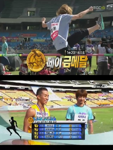 상추와 민호는 13일 오후 방송된 MBC '제 3회 아이돌육상선수권 대회' 남자 높이뛰기에서 1m73cm를 똑같이 넘으며 공동 우승을 거머쥐었다. 여자부에선 페이가 1m20cm 기록으로 당당히 1위에 올랐다.