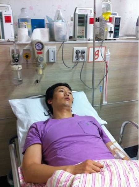 김정태는 23일 오전 자신의 트위터에 "촬영가는 길. 어제 링거 맞고 겨우 눈 뜨고 간다"라는 글과 함께 병원에 누워 있는 사진을 올려 팬들을 놀라게 했다.