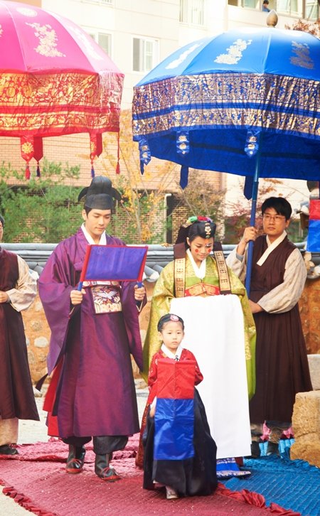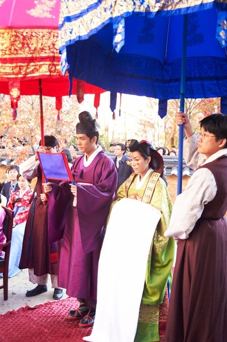 두 사람의 결혼식 촬영은 지난 30일 극중 만월당의 배경이 된 은평구 진관동에 위치한 금성당 앞마당에서 '불굴의 며느리' 전 출연진이 모두 모인 가운데 전통혼례로 진행됐다.