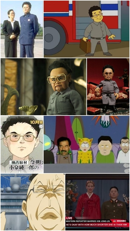 만화 '심슨가족'도 김정일 위원장을 비꼬았다. 전직 CIA 요원이 북한 수용소에 수감됐던 이야기를 다루는 에피소드에서 김정일 위원장은 외국인으로부터 "당신은 결코 지도자가 될 수 없을 것"이라는 소리를 들으며 비웃음을 사는 땅딸막한 인물로 등장한다. 그는 이후 전직 CIA요원을 고문해 '키가 작다고 위대한 사람이 될 수 없는 건 아냐'라는 뮤지컬을 쓰게 한다.
