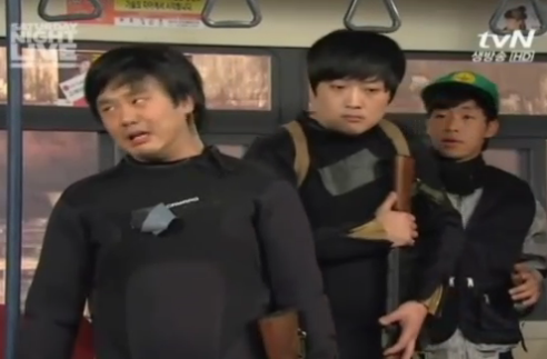 김인권은 지난 17일 방송된 'SNL 코리아'에 출연, 무장 남파 간첩으로 분해 상황극 개그를 선보였다.