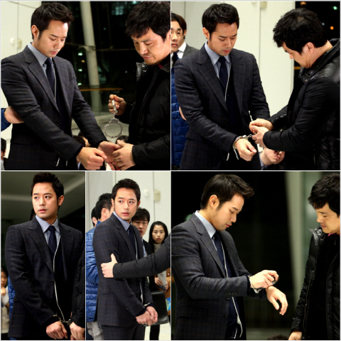 천정명이 두 손목에 수갑을 찬 채 어두운 표정을 짓고 있는 모습이 포착됐다.