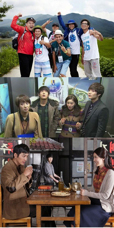 KBS 예능프로그램 '해피선데이'의 '1박2일' 코너와 방송중인 1TV 일일극 '당신 뿐이야', 2TV 'TV 문학관-복희 누나'(위부터 아래로)