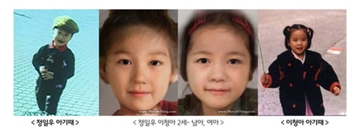 공개된 사진 속 아이의 모습은 이청아의 눈매와, 정일우의 날카로운 콧대를 빼닮았다. 2세 합성사진이 실제 정일우와 이청아의 어렸을 적 모습과 똑같이 닮아 인터넷상에서 인기몰이 하고 있다.