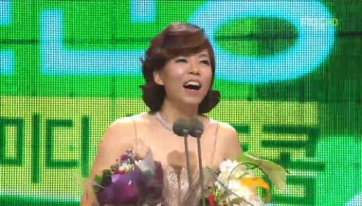 29일 오후 9시55분 경기도 일산 MBC드림센터에서 생방송으로 진행된 2011 MBC 방송연예대상 시상식에서 '웃고 또 웃고'의 정명옥이 코미디·시트콤 부문 여자 신인상을 받았다.