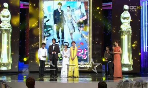 30일 진행된 MBC 드라마대상 시상식에서 공효진 차승원 주연의 '최고의 사랑'(극본 홍정은 홍미란·연출 박홍균 이동윤)이 최고상인 '올해의 드라마상'을 수상하는 영예를 안았다.